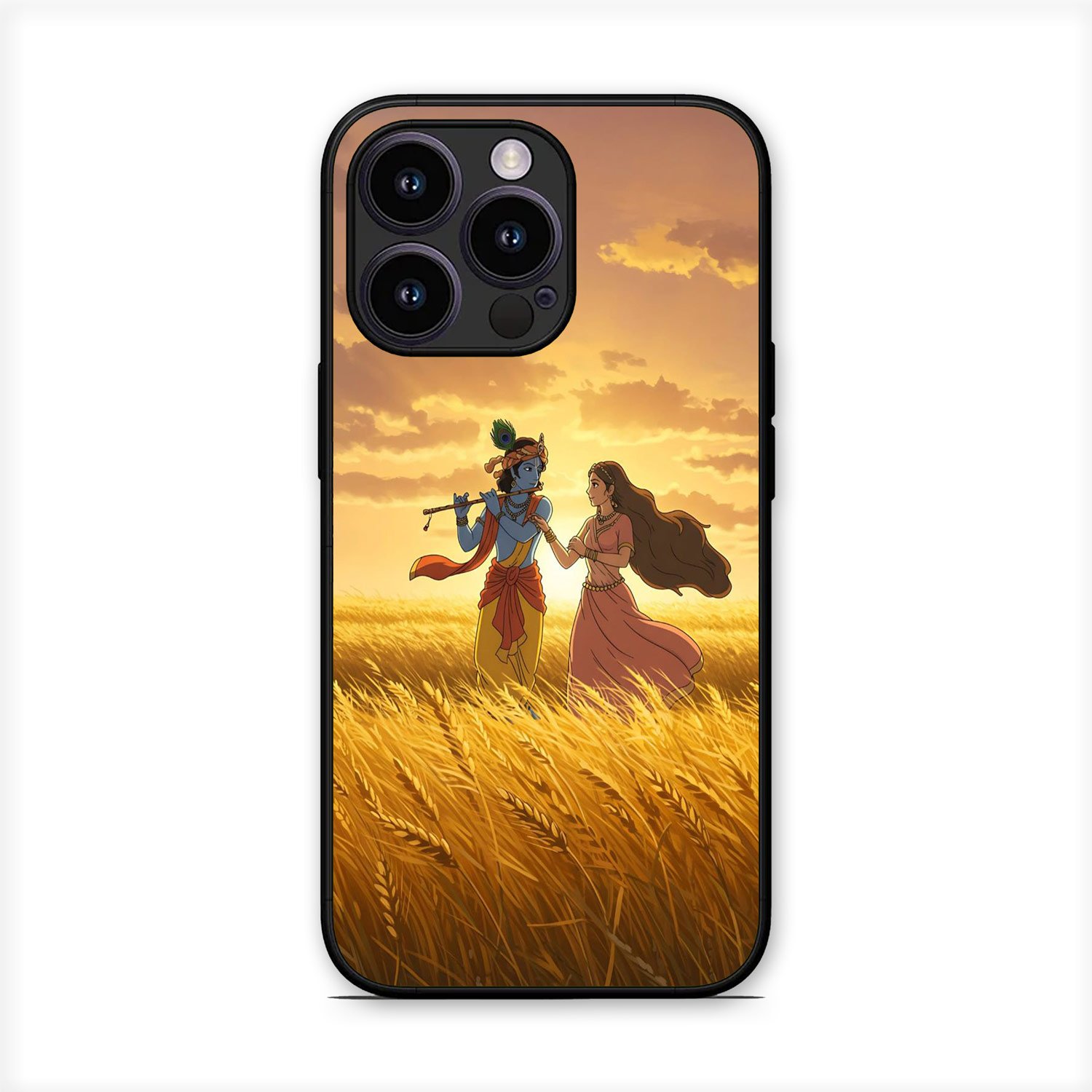 Radhe Krishna Sunset Glossy Metal TPU Mobile Back Cover D024