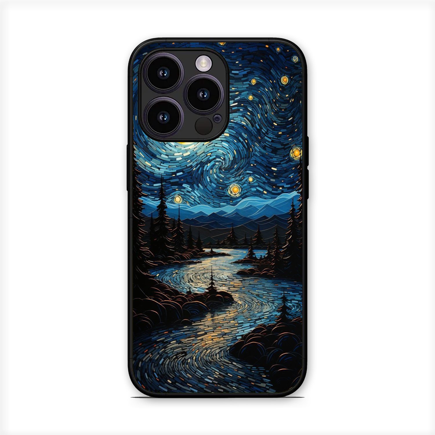 Aesthetic Night Moon Glossy Metal TPU Mobile Back Cover D005