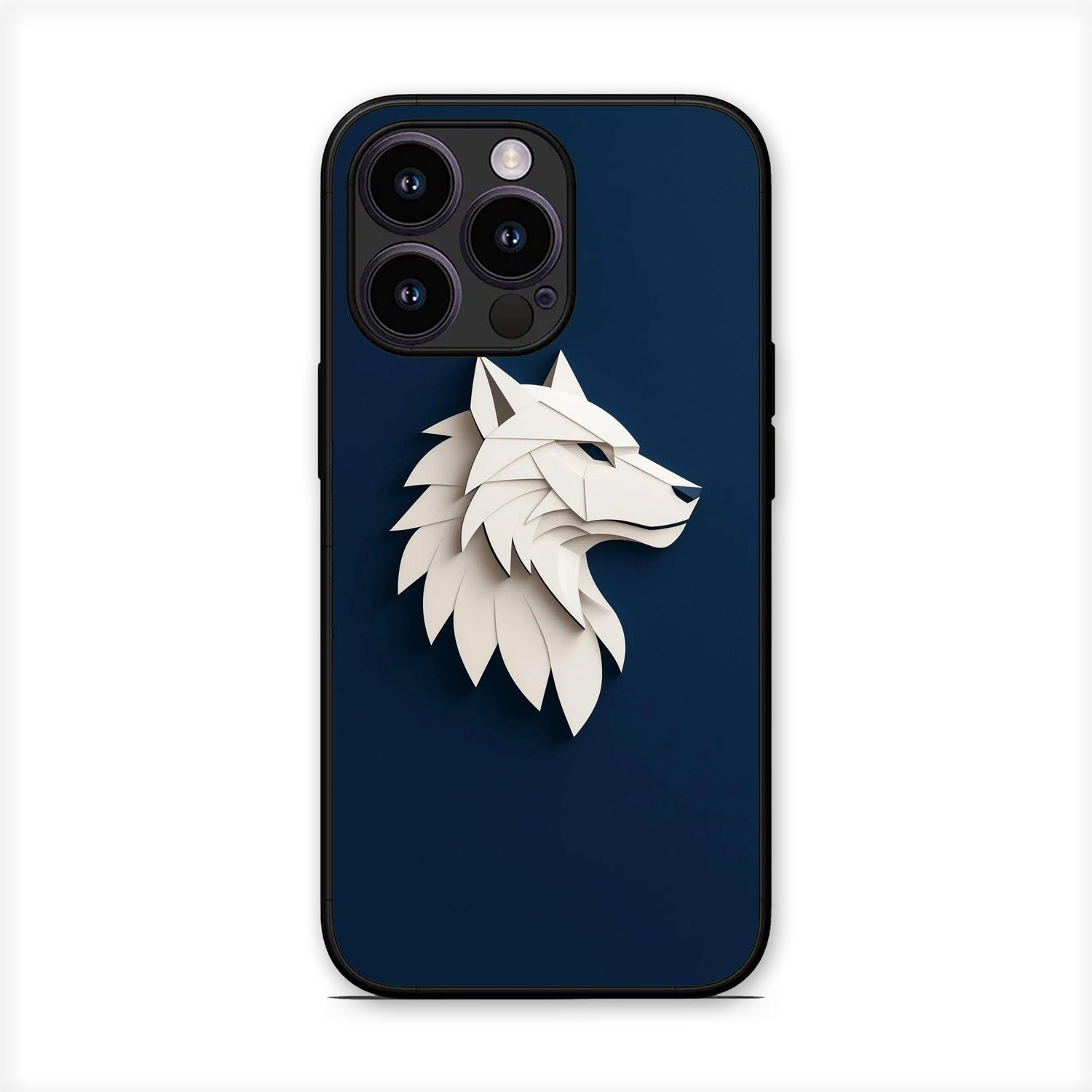 Aesthetic White Wolf Glossy Metal TPU Mobile Back Cover D044