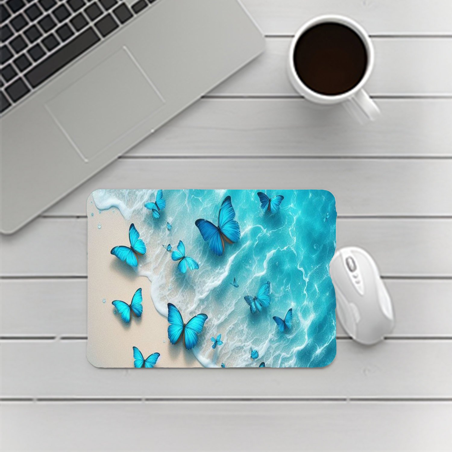 Blue Beach With Butterfly Mouse Pad D010