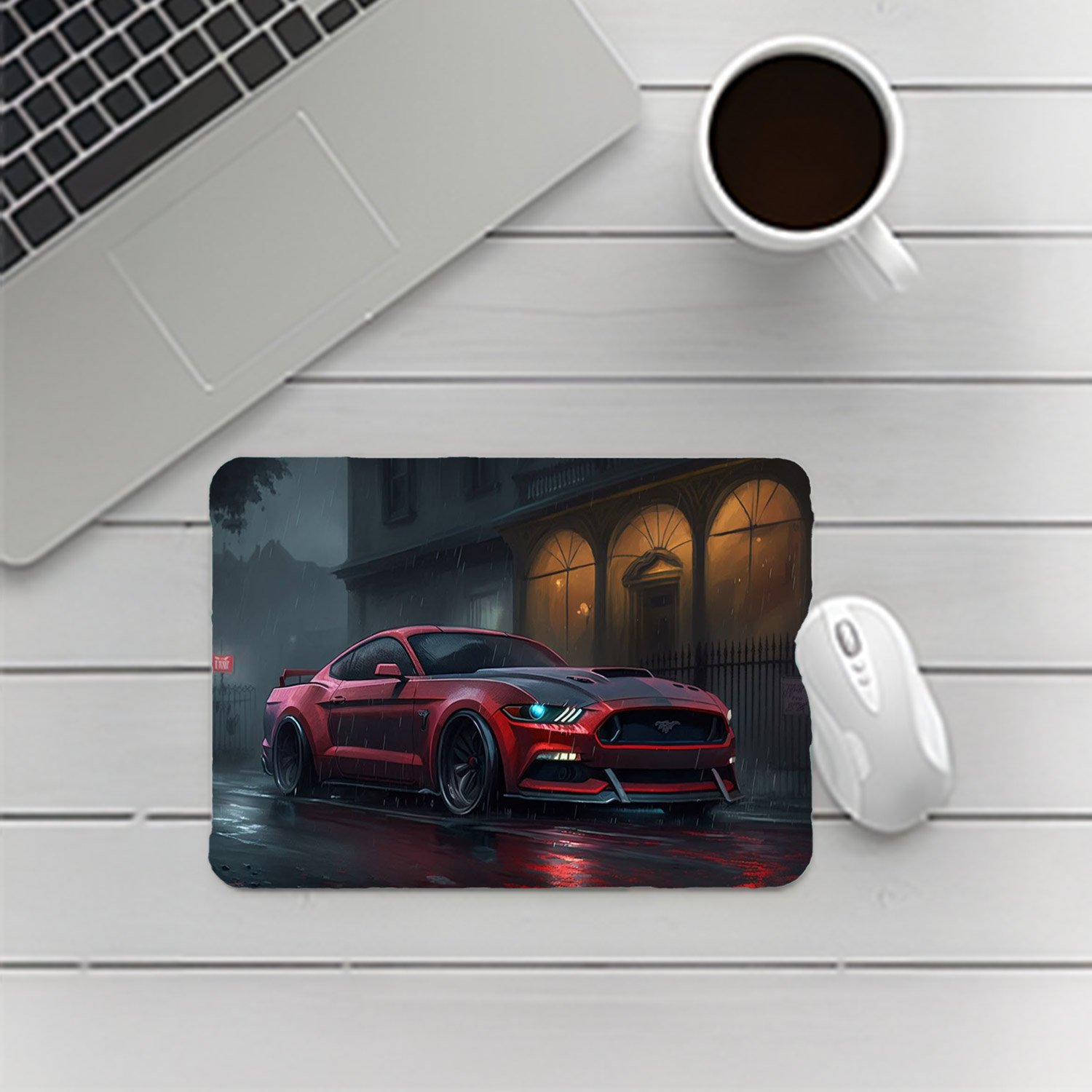 White Mustang Car Mouse Pad D069